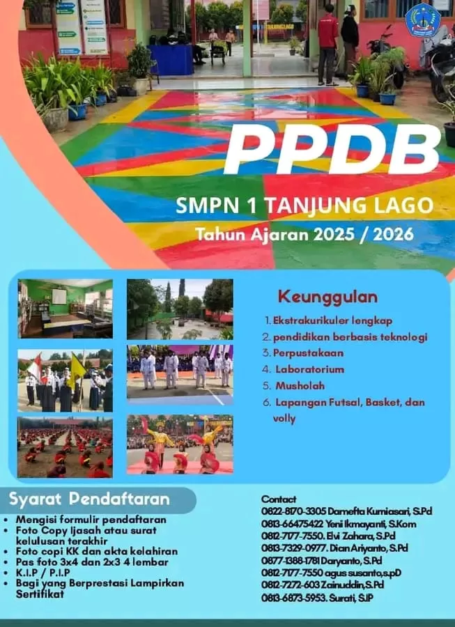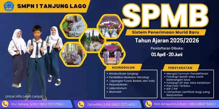 Saya sebagai Kepala Sekolah merasa bangga dan bersyukur dapat memimpin SMPN 1 Tanjung Lago . Kita semua berada dalam lingkungan yang memungkinkan kita untuk belajar dan berkembang bersama. Di SMPN 1 Tanjung Lago, kita memprioritaskan pendidikan yang berkualitas dan juga memberikan kesempatan bagi siswa-siswi untuk mengembangkan potensi mereka di berbagai bidang. Kami juga selalu berusaha untuk meningkatkan fasilitas dan sumber daya yang ada agar dapat memberikan lingkungan belajar yang optimal bagi siswa-siswi. Saya mengajak seluruh siswa-siswi dan Para calon siswa-siswi SMPN 1 Tanjung Lago untuk bersemangat dalam mengejar cita-cita dan mencapai prestasi yang membanggakan.